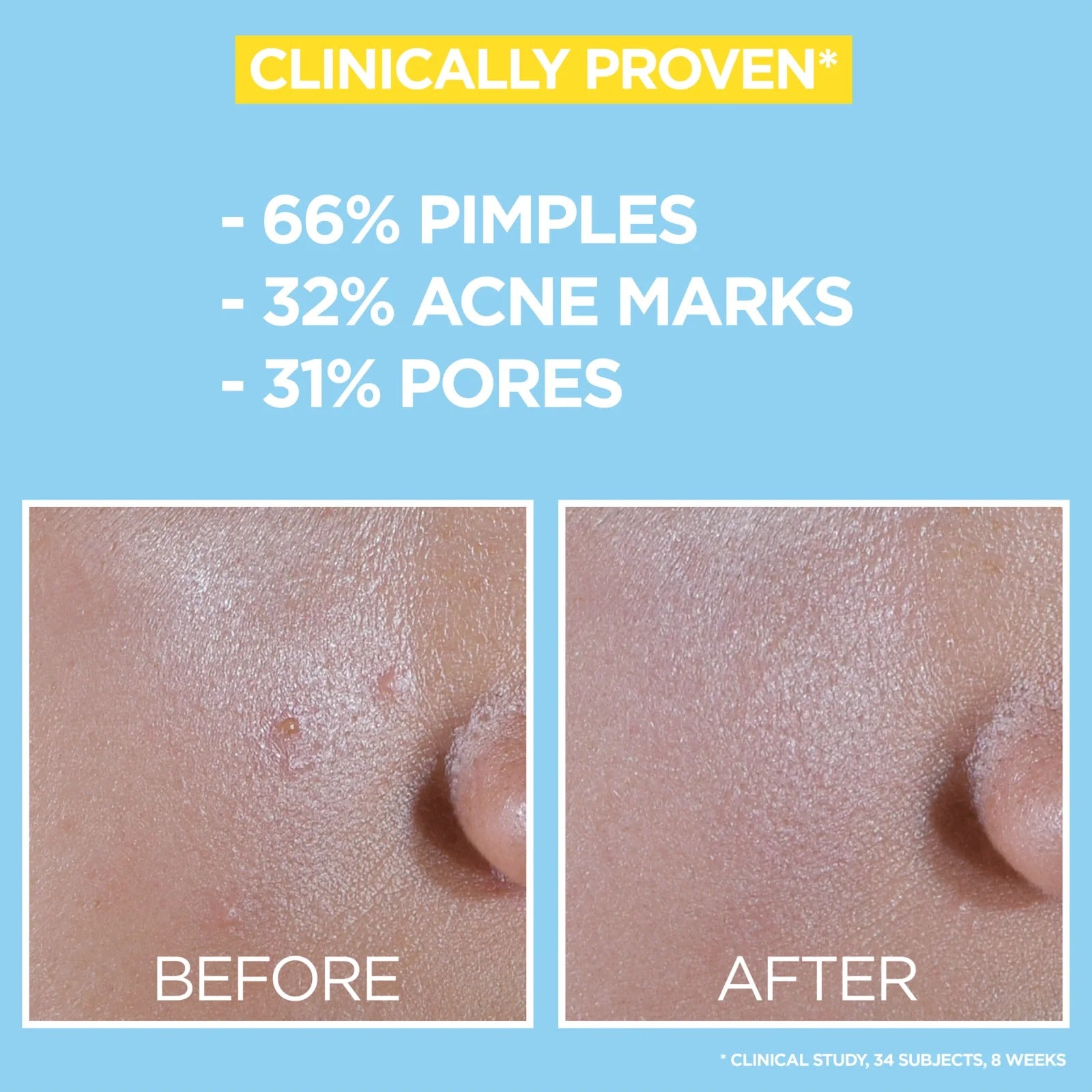 - eliminates signs of acne