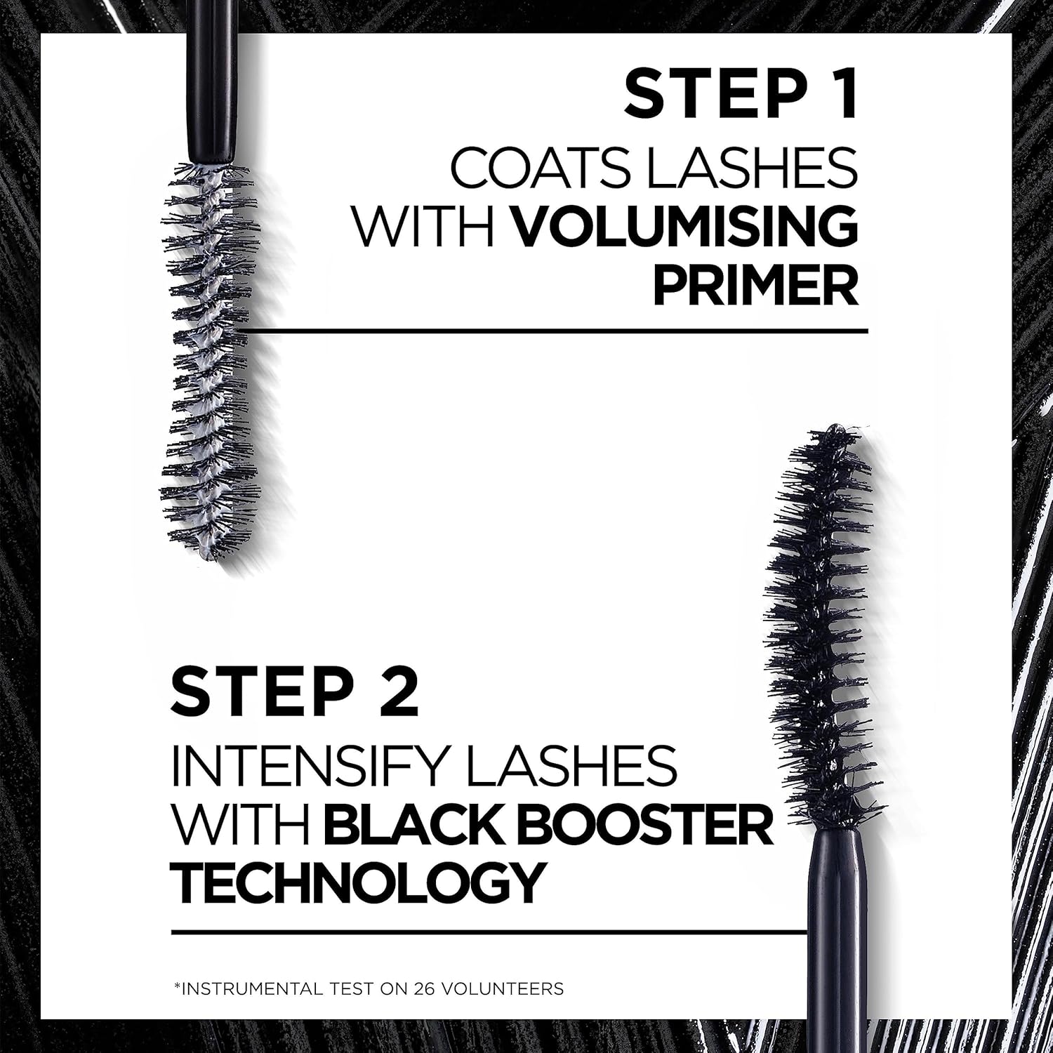 Who needs the salon? Be your own pro with Pro XXL Volume, a mascara inspired by salons and powered by science. Our 2 step mascara, gives an instant 3D volume effect, and is formulated with panthenol for an intense look. First step, coat lashes with the volumising primer evenly for up to 12x more volume*. Next step, intensify your lashes with black booster technology for +77% lengthening effect**. No clumps, smudge or flake. *Instrumental test on 29 volunteers **Instrumental test on 25 volunteers