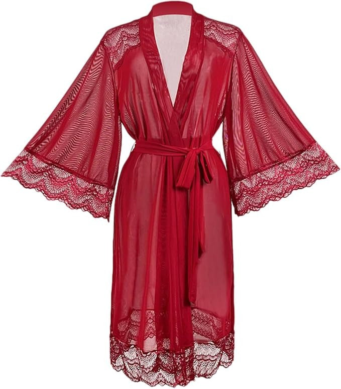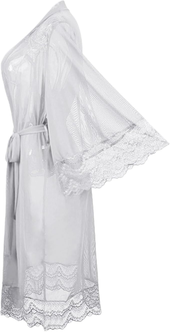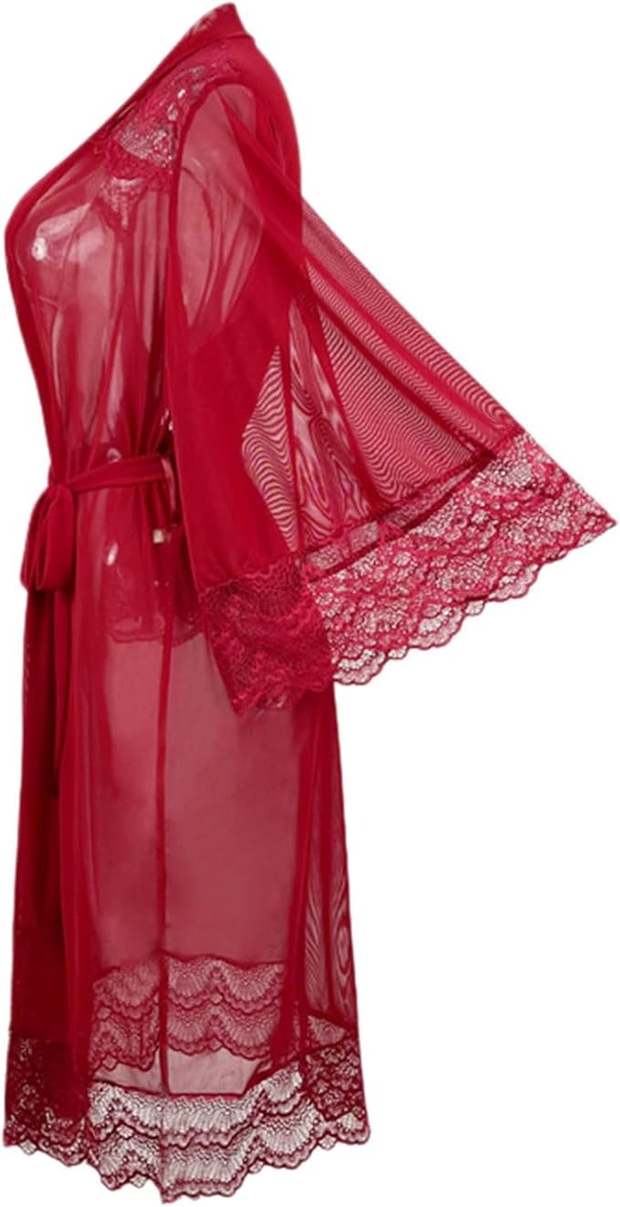 Women's Lingerie Sets Satin Robe Kimono Lace Dressing Gown Plus Size Babydoll Nightwear with Belt Gifts for Women Set